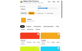 Adbear Color Harmony เป็นส่วนขยาย Chrome ฟรีที่ออกแบบมาเพื่อช่วยผู้ใช้ในการสร้างพาเลตสีจากการป้อนสี HEX มันเชี่ยวชาญในการสร้างการรวมกันของสีที่อบอุ่นและเย็นซึ่งมีความน่าดึงดูดและกลมกลืน ผู้ใช้สามารถป้อนรหัสสี HEX และรับพาเลตที่เสริมการเลือกของพวกเขา ทำให้มันเป็นเครื่องมือที่เหมาะสำหรับนักออกแบบและผู้ที่สนใจในทฤษฎีสี